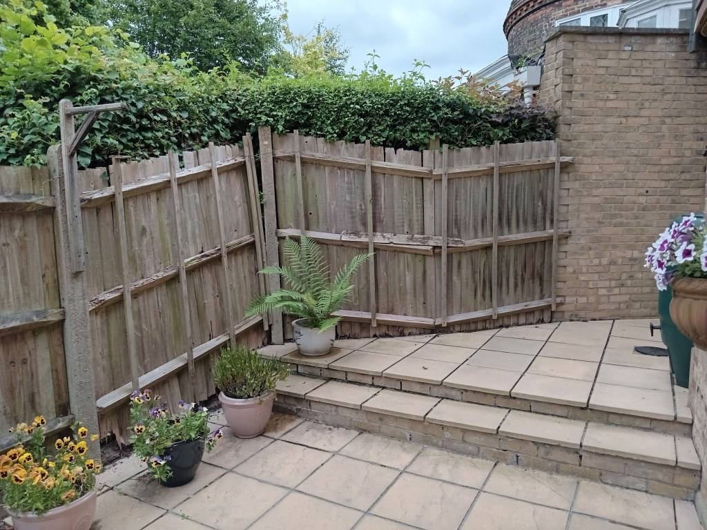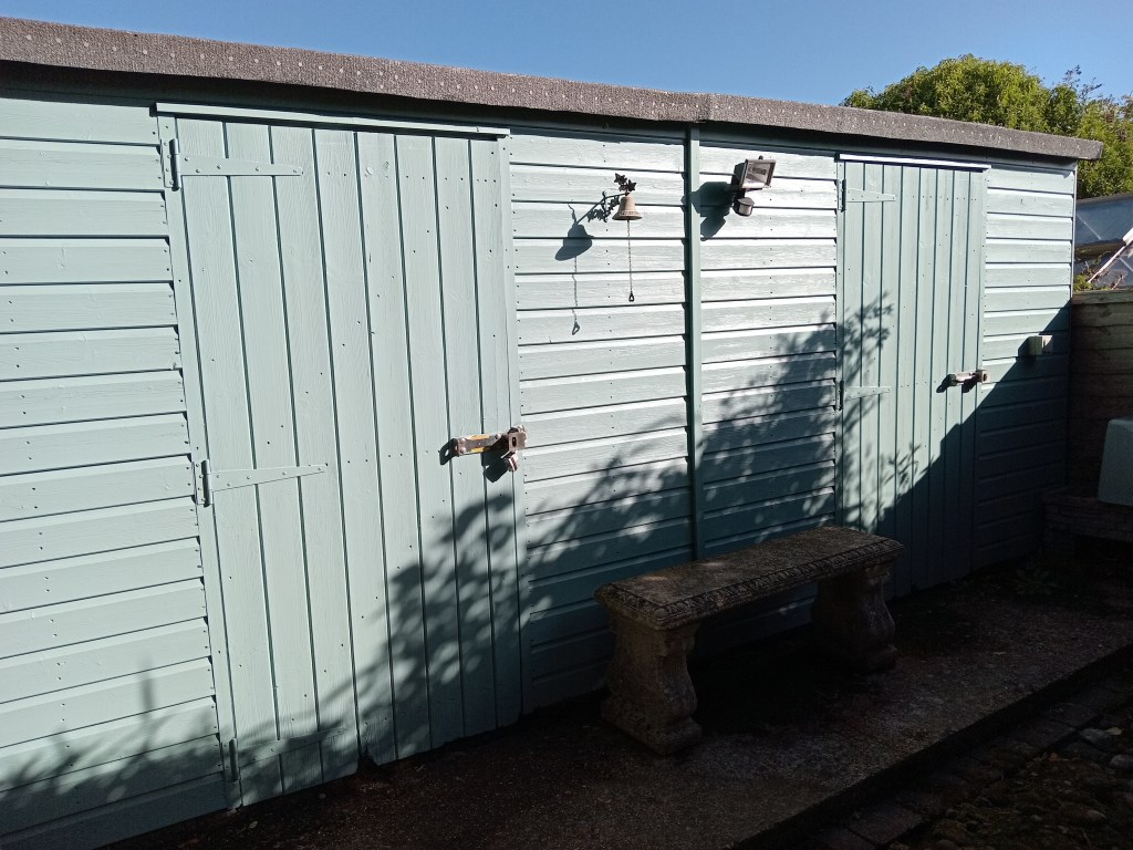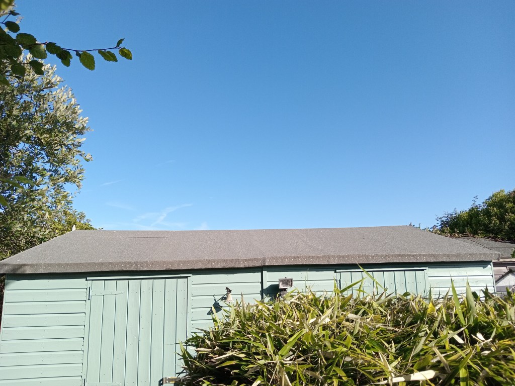 20m2 of new roofing felt and bitumen overlap adhesive + roofing nails. No wind can get that off.
