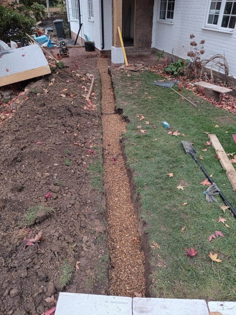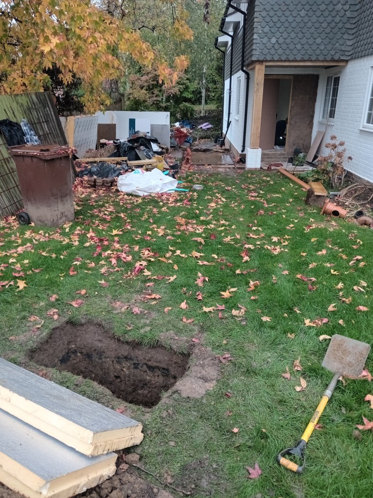 Soak-away pit dug in for rainwater. Building regs am I right.